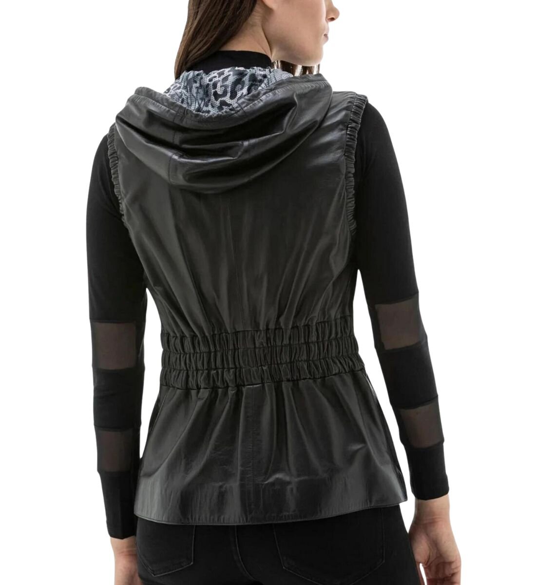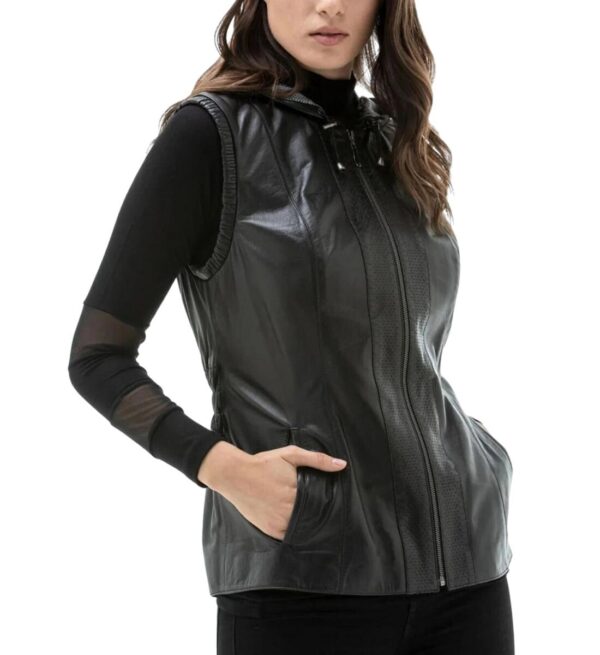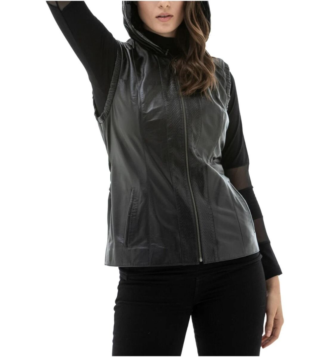 Sleek and Stylish: Black Fashionable Hooded Leather Vest Sleek and Stylish: Black Fashi...