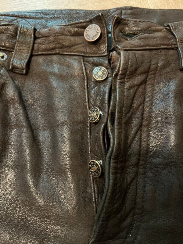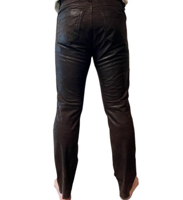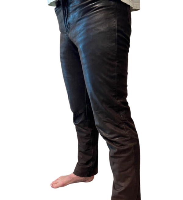 “Timeless Elegance” is more than a title; it’s a promise. It’s a promise of classic appeal, of a design that is beyond the confines of time, and of an embodiment of the refined gentleman. In the world of fast-paced fashion, these trousers stand as a testament to the enduring allure of timeless style. Vintage dark brown, high-waisted, and crafted from genuine leather, they are a symbol of fashion that is, and always will be, timeless in its elegance.